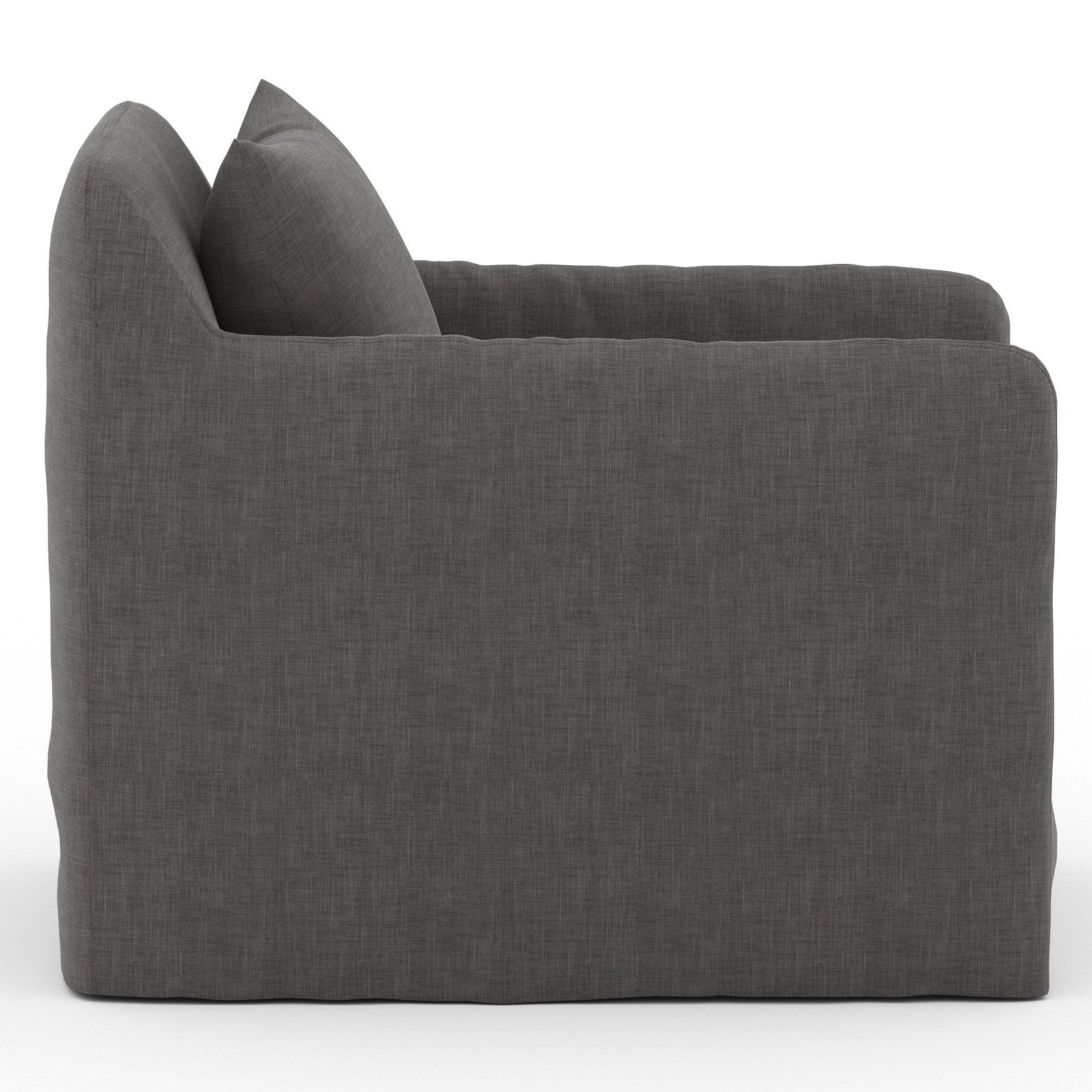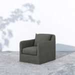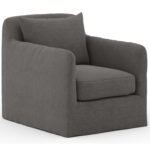 A fresh, outdoor-friendly spin on the swivel chair. Removable charcoal slipcover meets style with sensibility. Great in pairs. Cover or store inside during inclement weather and when not in use.