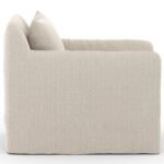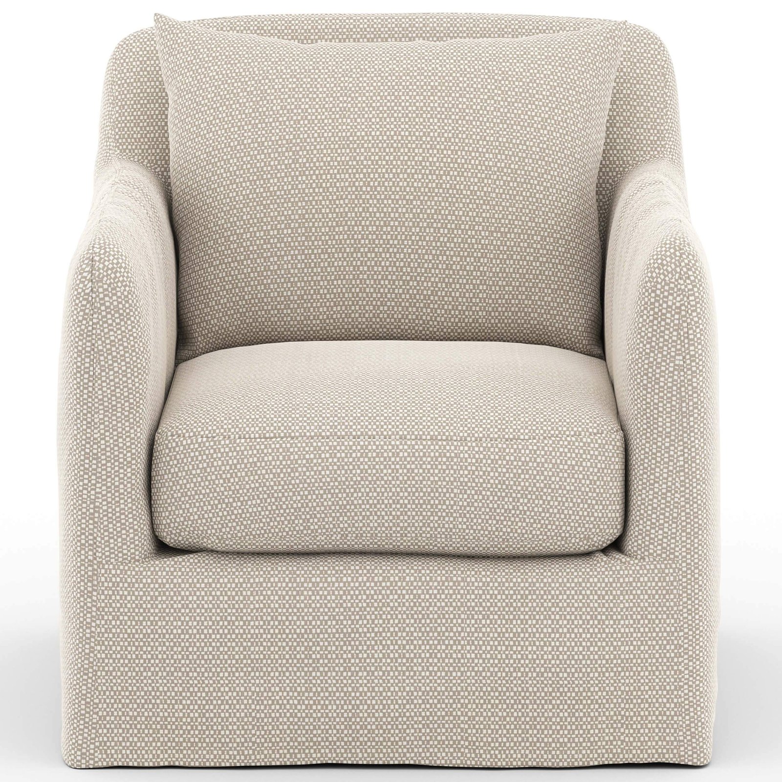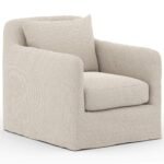 A fresh, outdoor-friendly spin on the swivel chair. Removable sand-colored slipcover meets style with sensibility. Great in pairs. Cover or store inside during inclement weather and when not in use.