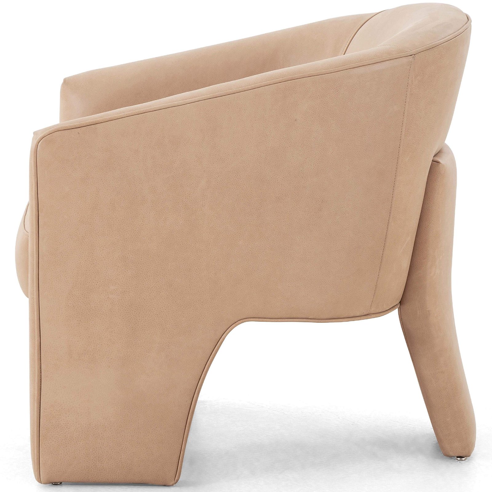 Well-tailored and stylistically unique, top grain leather lends a high-fashion feel to a cleverly constructed three-legged design.