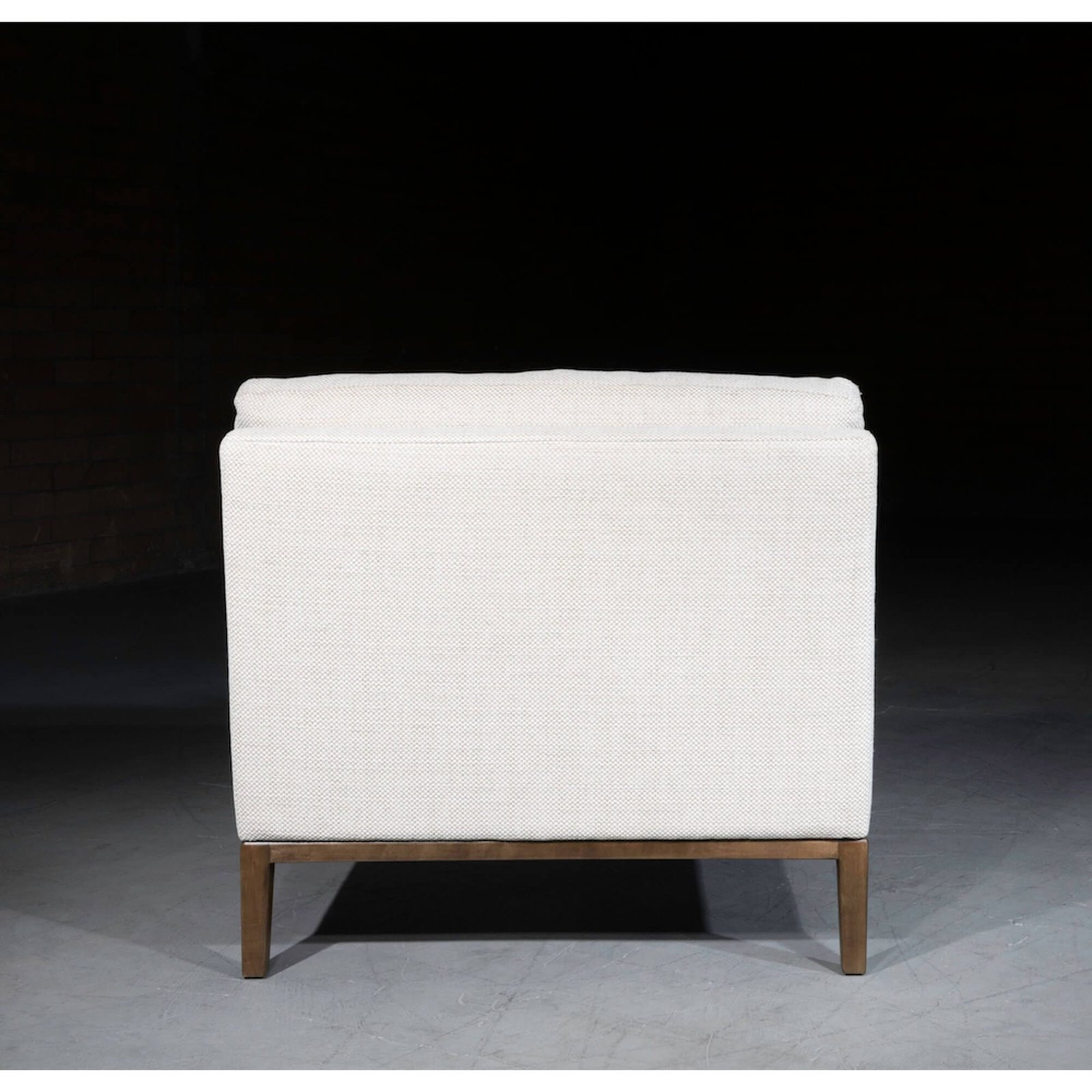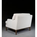 The Lewis Chair is the perfect armchair in any reading nook with its rounded arms and lush tufted seat leading to a soft, padded back. Rest your crossed legs on one of its oak legs and revel in comfort.