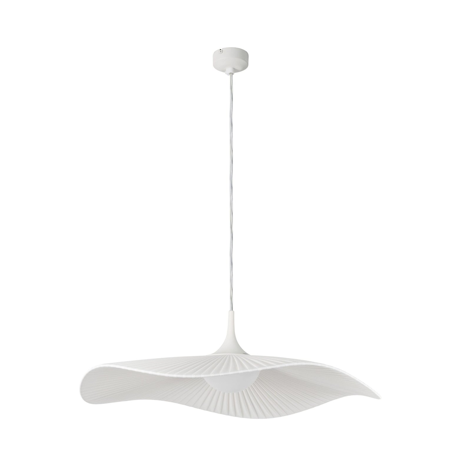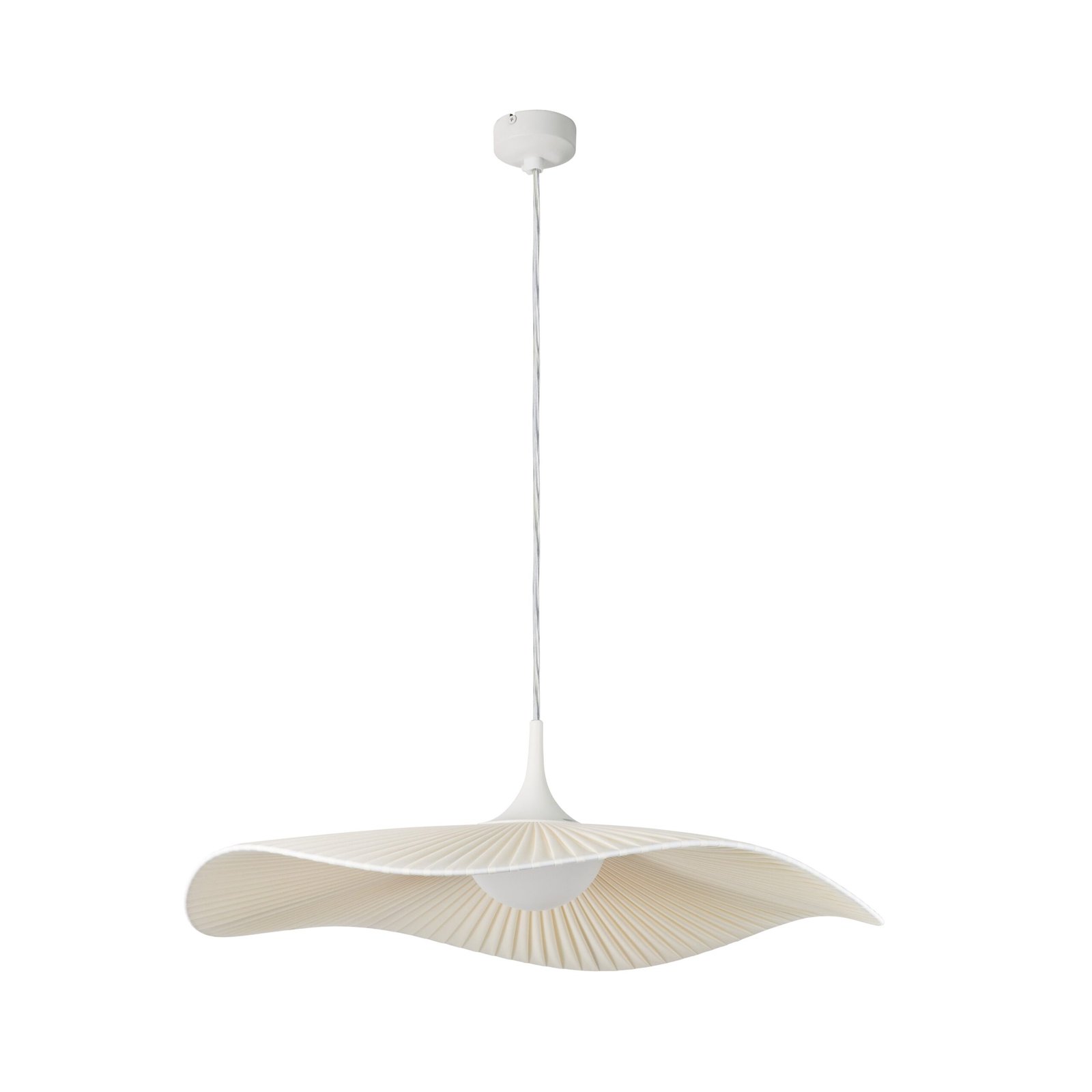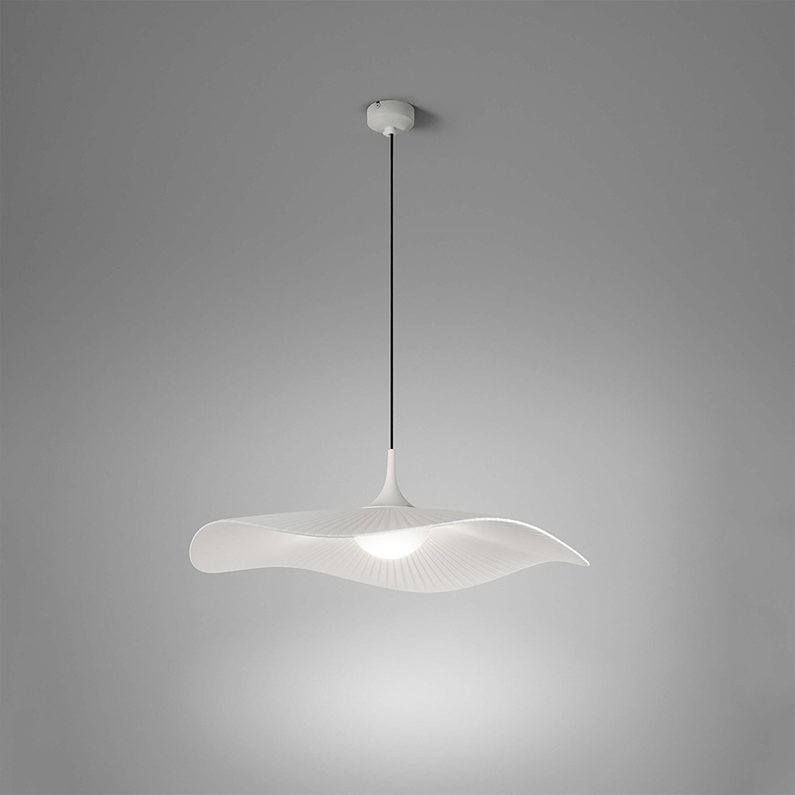 A stunning fusion of natural and industrial elements, the Mediterrania Pendant Light from Bover creates unmatched visual impact in any interior. Crafted in 2019 by Alex Fernandez Camps, its elegant design features a curving fabric shade delicately draped over an iron and aluminum frame. Reminiscent of a pearl nestled in a shell, the powerful LED lighting emits bright, direct beams, creating a luminous and sophisticated ambiance.